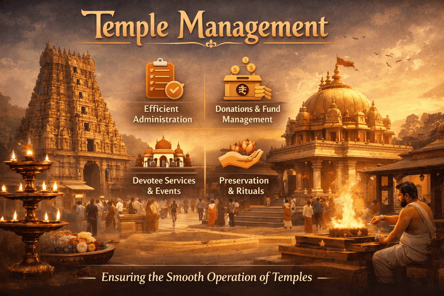 Managing a temple involves devotion, dedication, and organization. Our Temple Management System simplifies all administrative tasks, including donations, event scheduling, inventory tracking, and staff coordination. With secure and transparent systems, temple authorities can focus on spiritual activities while ensuring smooth operations and accountability. Devotees can stay connected with timely updates on poojas, festivals, and temple events.